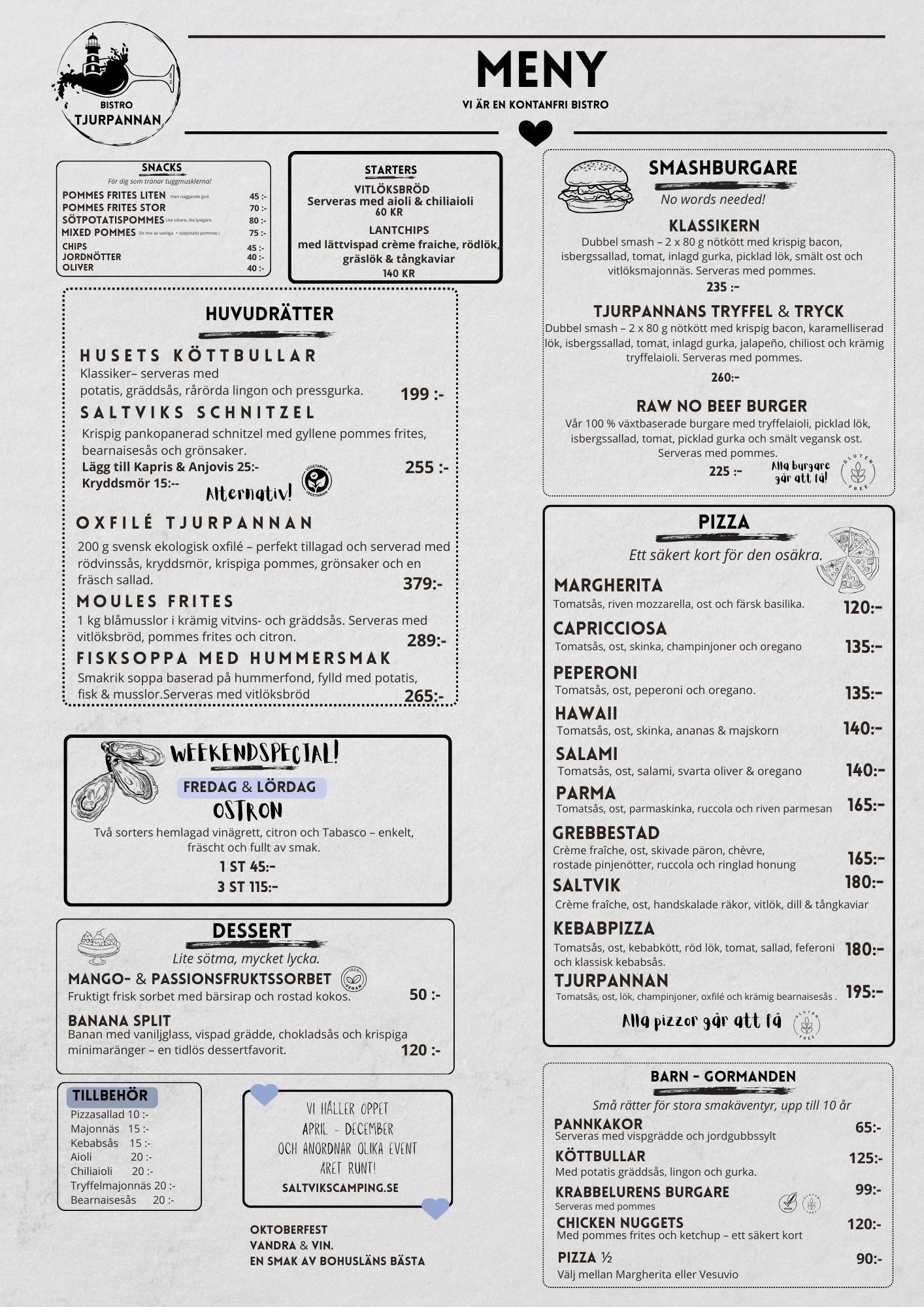 Prova en av våra berömda hamburgare, en krispig pizza eller varför inte något från havet? Här njuter du av god mat i skön miljö – oavsett om du vill ha en helkväll eller bara en kall öl efter en dag på stranden. Självklart har vi också favoriter för de små camparna.